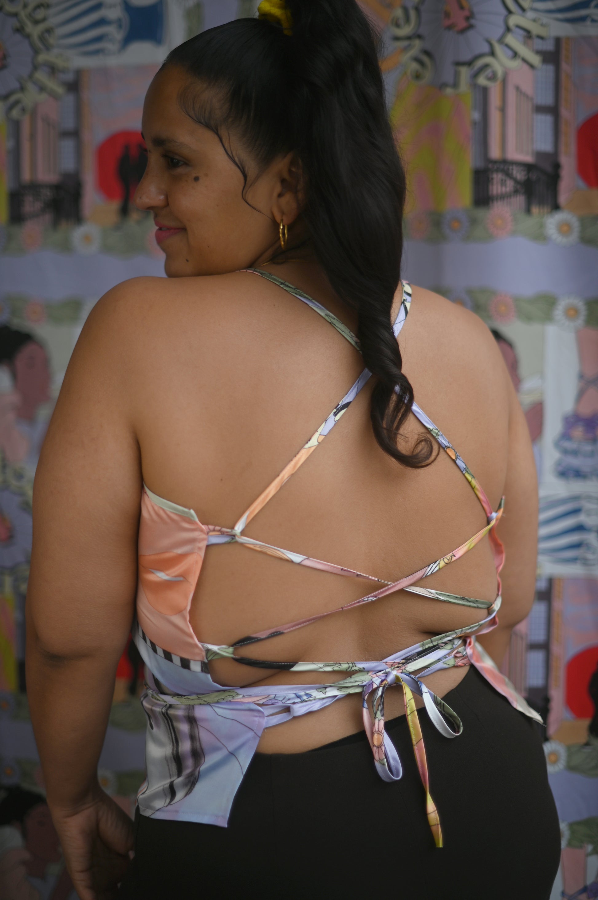 This top comes in three sizes that are adjustable to different body shapes. We call them "S" "M" and "L" but they also fit XS or XL, depending on how you wear them. Have a look at our size chart and take your own measurements to get a better idea of how long and wide the top will fit you.