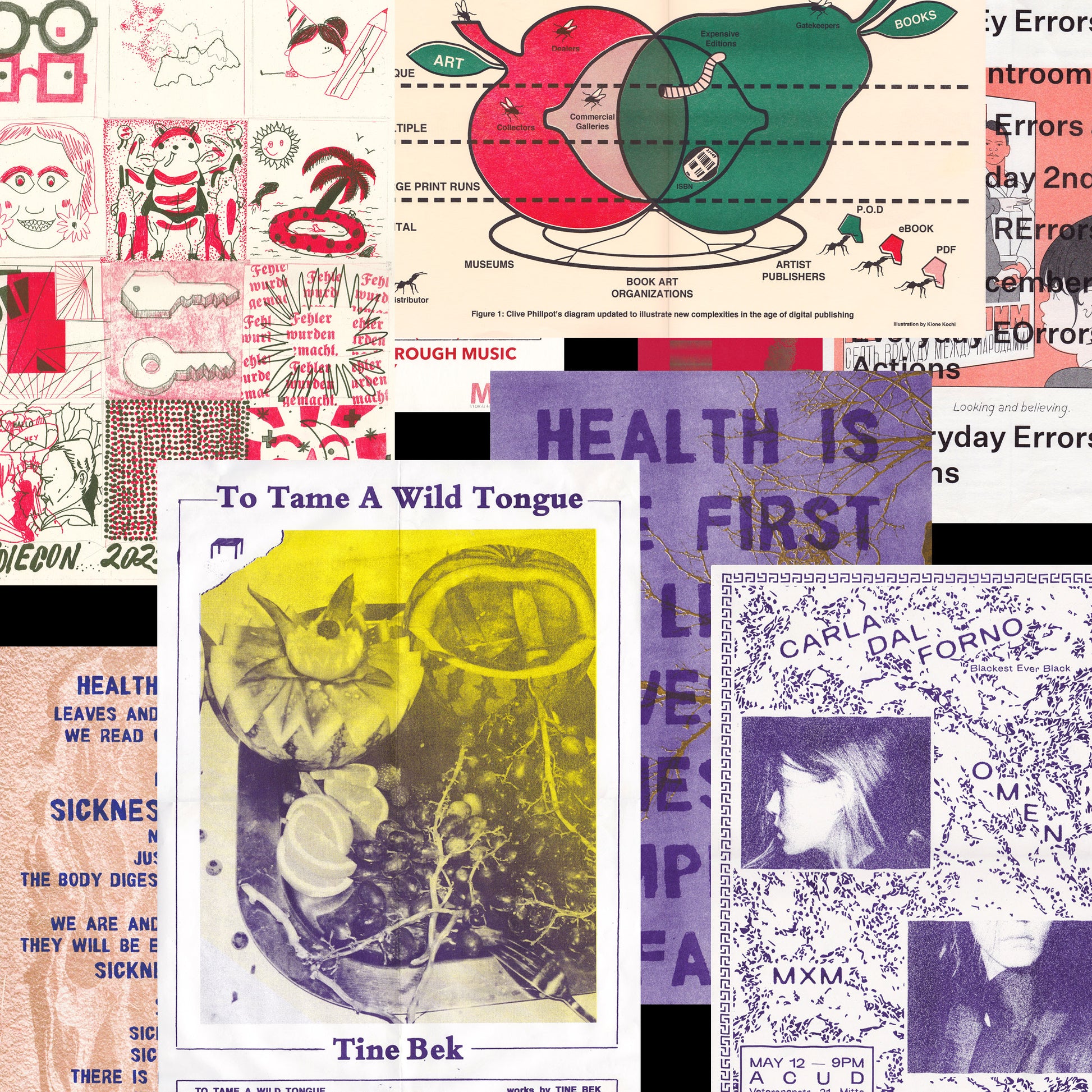 Before attending the workshop, reflect on a topic or motif you would like to work with. If you want to work with specific imagery or texts please print them out in greyscale beforehand. Otherwise we will provide stamps, collage and drawing material, printed typography and textures.