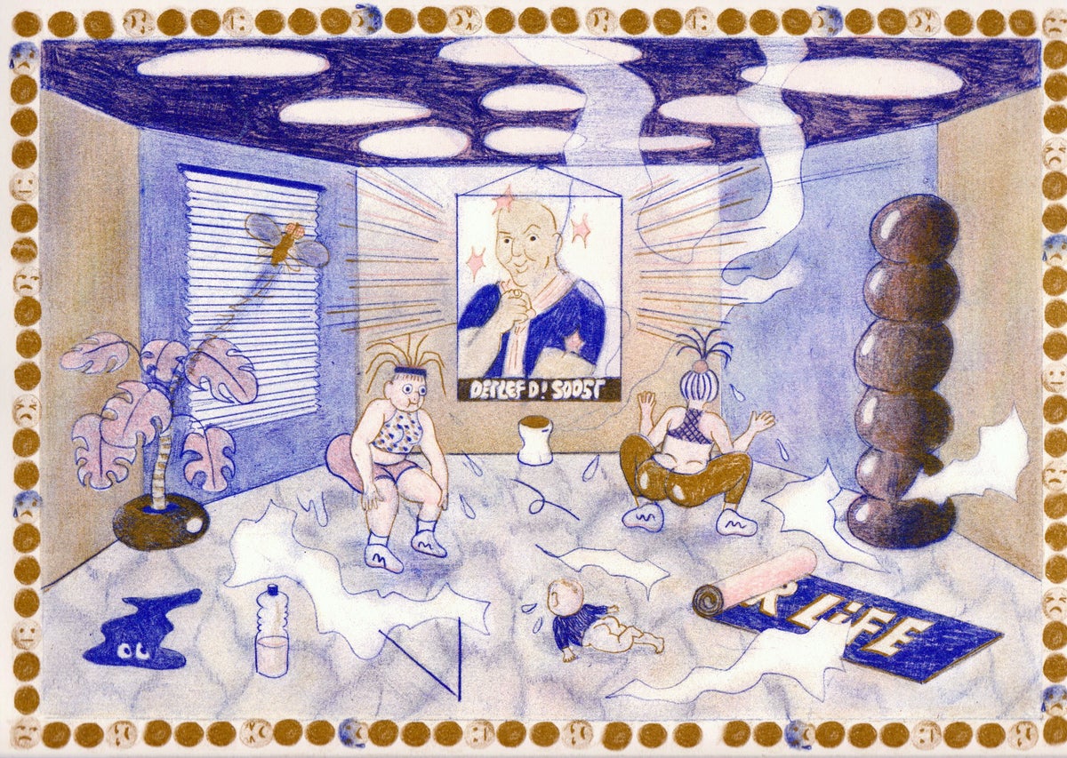 (risoprint in fluo orange, blue and flat gold on 150g paper, cropped A3)